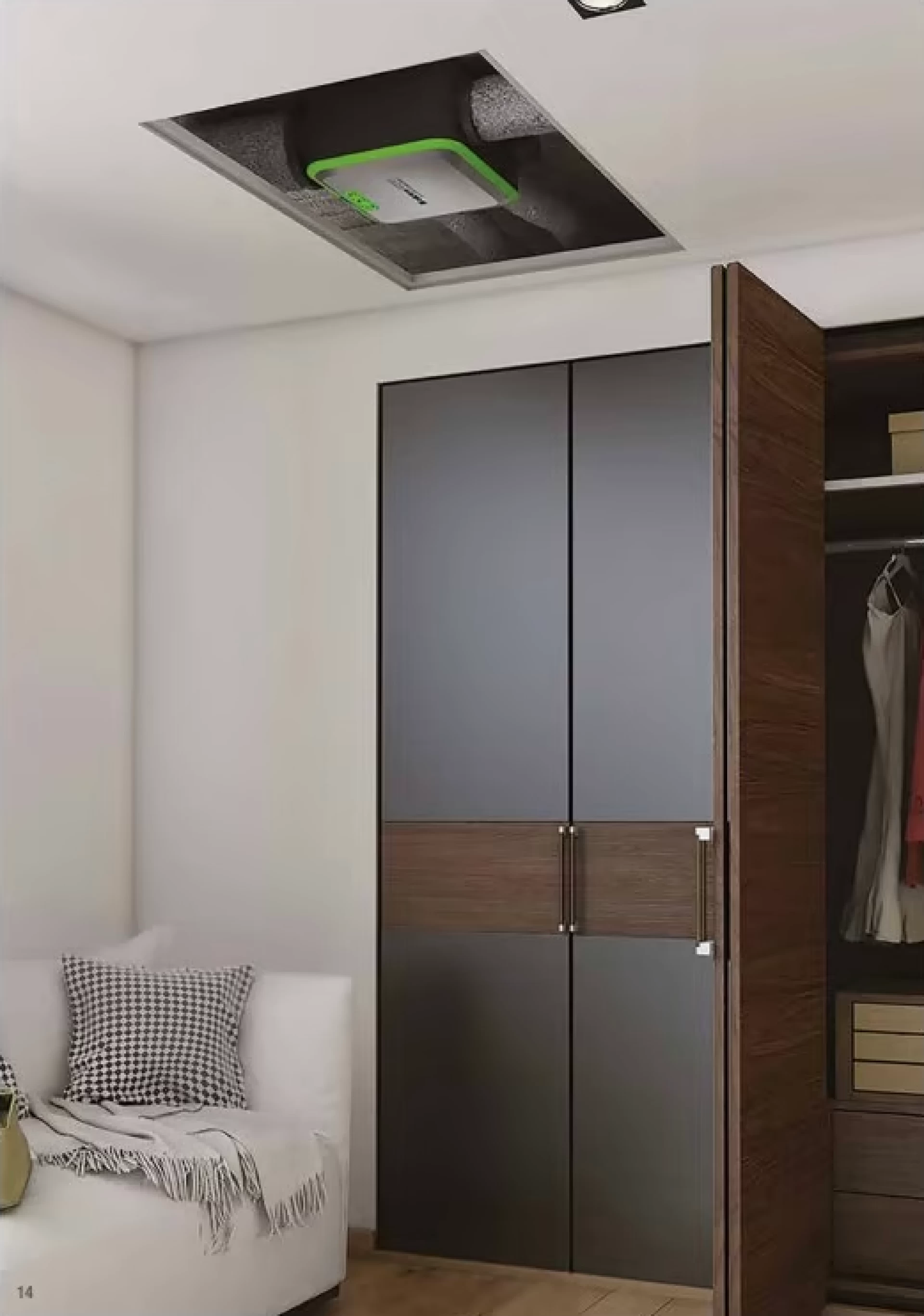 Posibilitate de montaj in orice pozitie, inclusiv incastrat in tavan datorita unei adancimi de doar 19cm