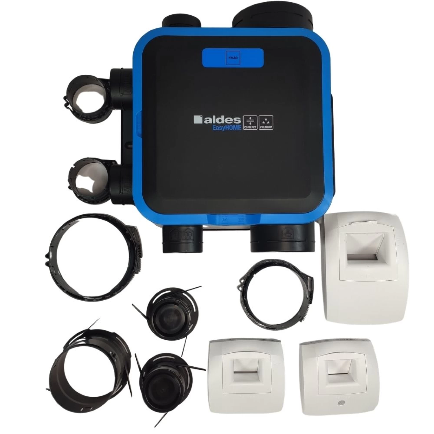 Sistem de ventilatie centralizata ( extractie ) cu kit 3 grile de extractie ce contin senzor umiditate, necesita suplimentar tubulatura si grile de aport aer proaspat cu montaj in usi, geamuri sau perete care permite aerului din exterior sa intre in locuinta, acestea se monteaza in incaperi precum dormitoare, birouri, living iar grilele de extractie conectate la centrala de ventilatie extrag aerul viciat din bucatarie, baie, camara. Grilele de extractie se deschid automat fara alimentare la curent ( exceptie cea cu senzor de prezenta ) cand umiditatea creste